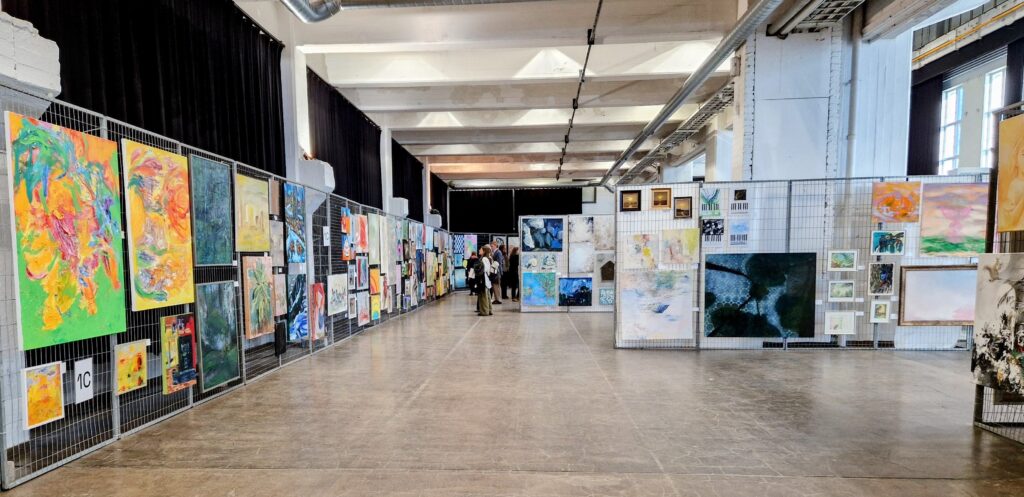 Promenadigallerian avajaiset keväällä 2024, itse taustalla keskellä, oman työn vierellä.